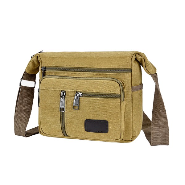 Rowaica Men's Crossbody Shoulder Bag, Lightweight, Large Capacity, Canvas, Khaki