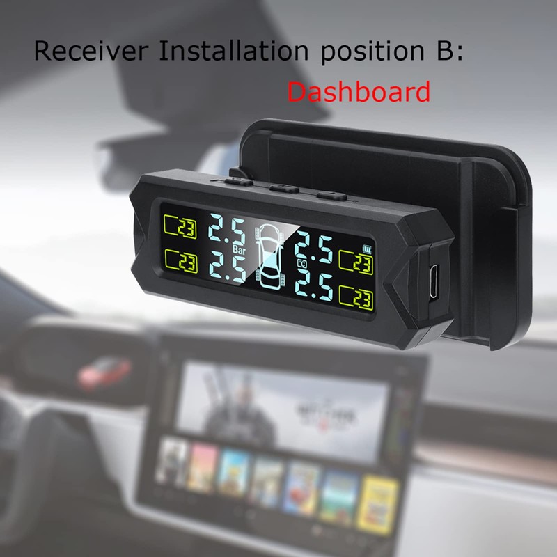 Supports USB cable charging and solar charging, allowing tire pressure monitoring system to operate continuously.