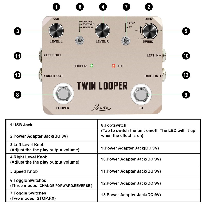 - Original manufactures for this Guitar effects twin looper station. Best quality and core technology.