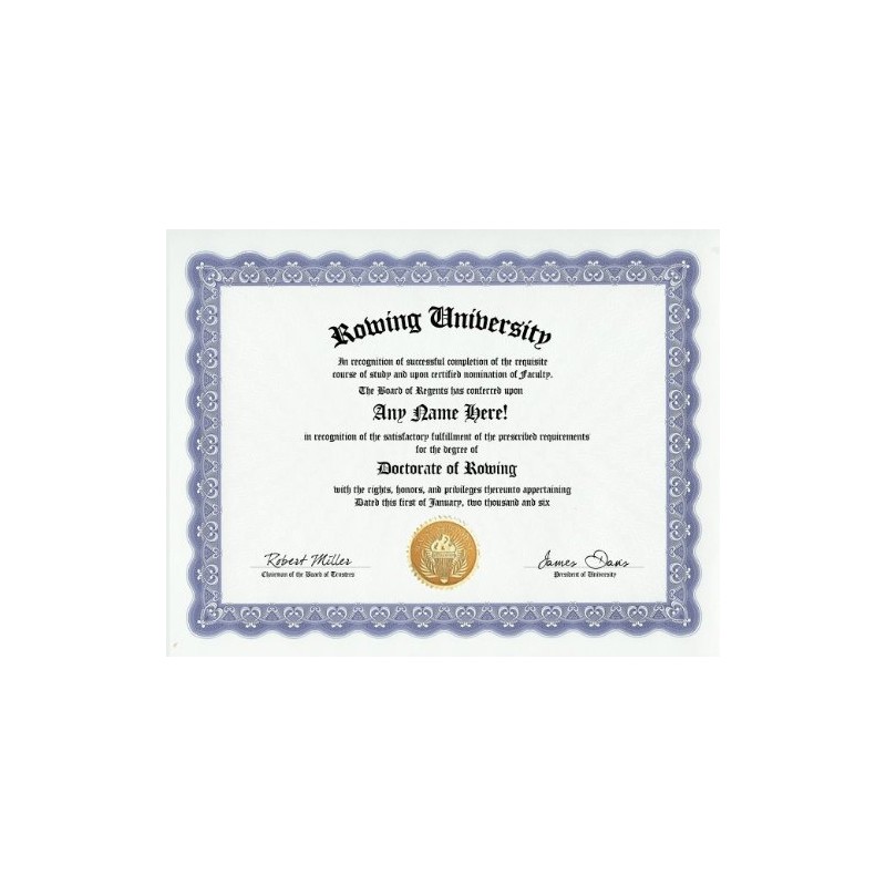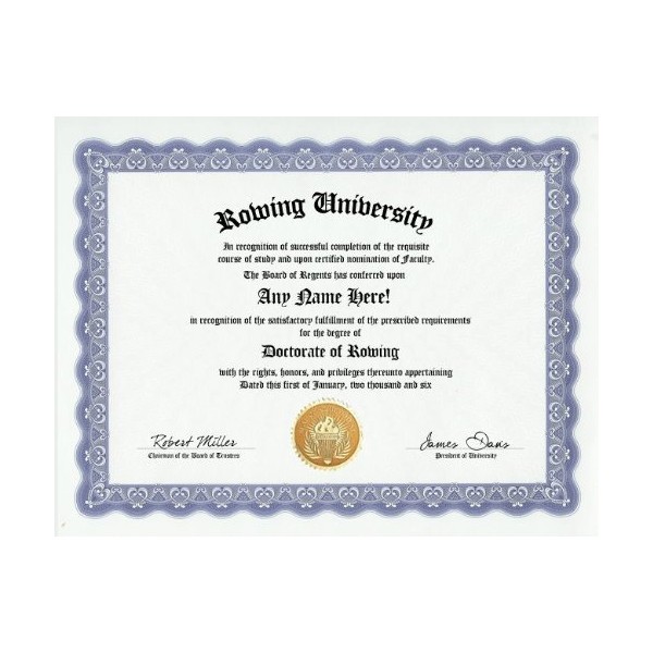 Rowing Row Degree: Custom Gag Diploma Doctorate Certificate (Funny Customized Joke Gift - Novelty Item)