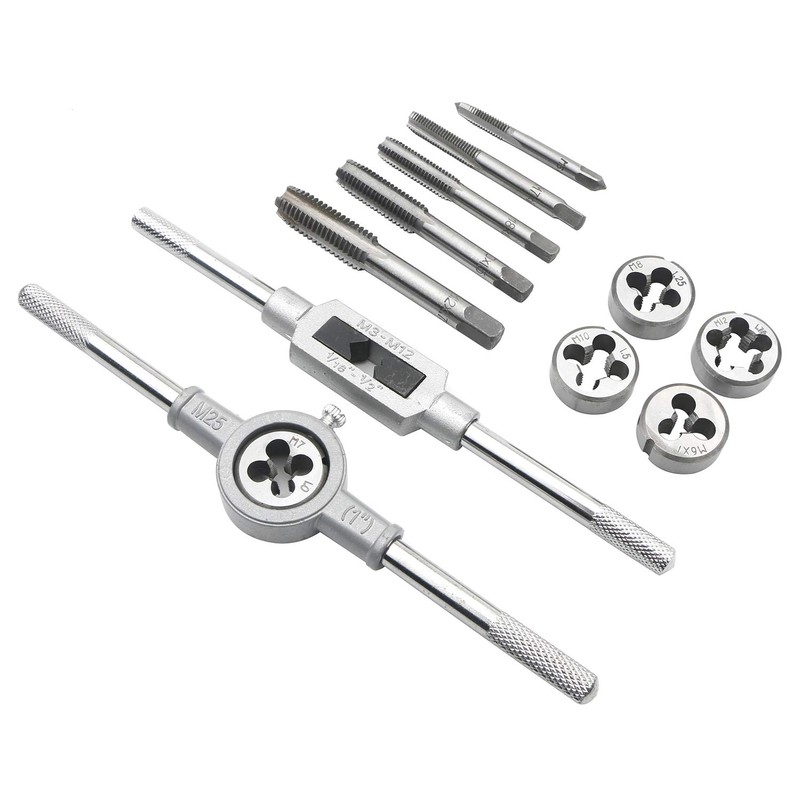 Rowiz 12Pcs/Set Tap and Die Set Combination Alloy Steel Hand Tools Metric Size Thread Plugs Straight Taper Reamer Tools with Adjustable Tap Wrench