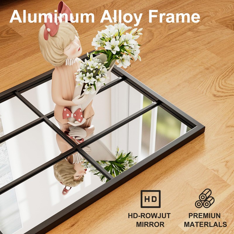 - 【Square Pane Mirror】65" x 22" lattice arch mirror brings a different aesthetic to the decoration of the entire room. The frame of the independent arch and square wall mirror is made of high-quality aluminum alloy material. The independent frame has waterproof, shockproof, rustproof and other functions, and the surrounding area adopts a "seamless welding" design.