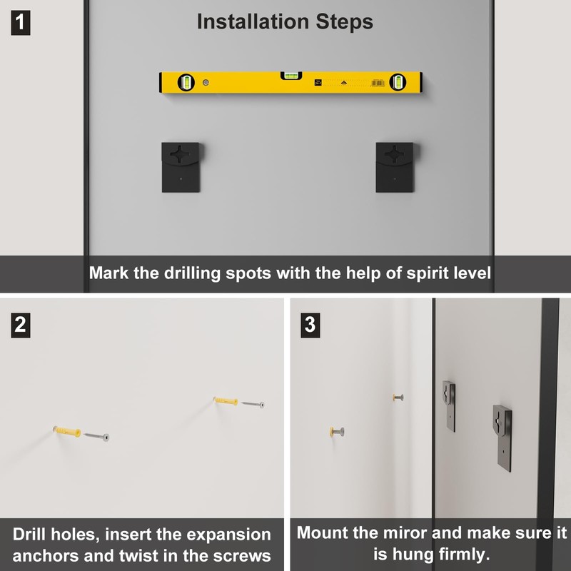 - 【Easy to install】Independent floor mirrors are suitable for installation and placement in different places. Whether you choose to install it on a window or in a room alone, the installation process is very simple. And accessories and instructions are included.