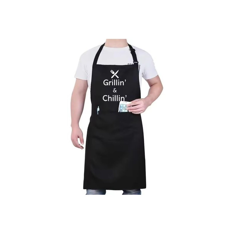 - Premium Quality & Comfort: Made from a durable polycotton blend that’s breathable, lightweight, and built to handle BBQ splatters and spills. Adjustable Fit: Features an adjustable neck strap and long waist ties for a secure, comfortable fit on all body types. Functional & Convenient:2 front pockets provides easy access to grilling tools, seasonings, or your phone. Fun & Stylish Design: The bold “Grillin’ & Chillin’” slogan adds personality, making it a perfect gift for BBQ lovers and backyard chefs.