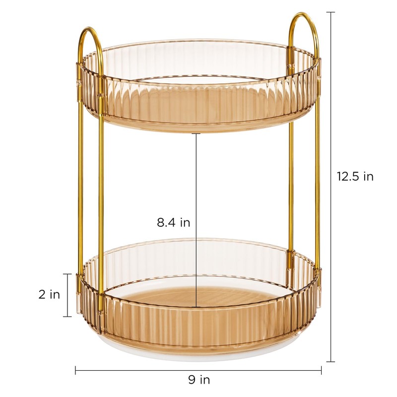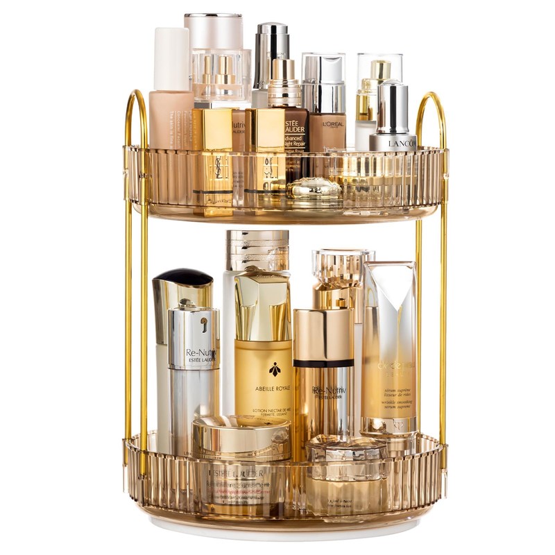 ROWNYEON Rotating Makeup Organizer,Makeup Organizers And Storage,2 Tier Skincare Organizer Spinning For Countertop |9 Inch | Gold | Round