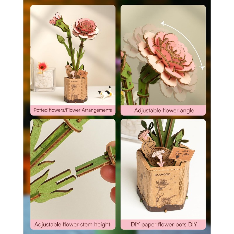 - Innovative 3D flower puzzle: The gift of flowers is a way for people to express their love and good wishes, and different flowers are also given unique and beautiful meanings. ROWOOD combines nature and creativity to create a range of wooden flower model kits.