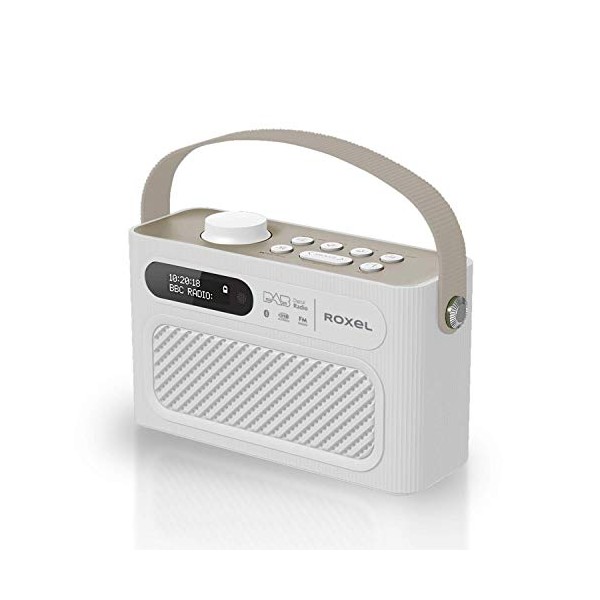 Roxel RDR-40 Stereo DAB/DAB+ Digital and FM Radio Portable Bluetooth Speaker with Dual Alarm Clock Function, USB & Micro SD MP3 Playback Function (White)