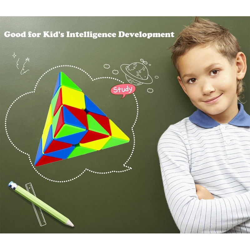 - GREAT PUZZLE FOR FUN- The Pyramid speed cube could boost the hand-eye combination, stimulate your imaginary ability and improve memory, recall, reasoning and focus. This speed cube also provides hours of challenging and fun puzzle play. With a lot of practice you and your kids can solve it in seconds! Now add to box and enjoy your family time with this amazing puzzle!