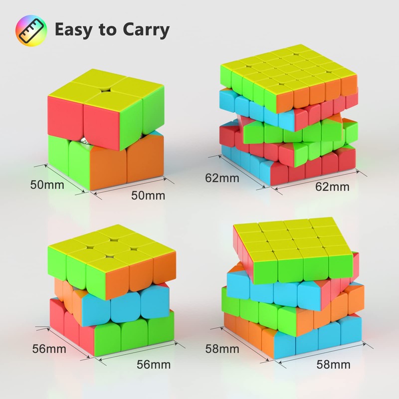 • ⛳ Ideal Combination - The ​​Speed Cube Set (2x2 3x3 4x4 5x5 Stickerless Cube) is the classic color-coordinated puzzle game. Four different levels to meet all your needs, a great choice for both professionals and beginners. Each Speed Cube Set contains an instruction manual in English.