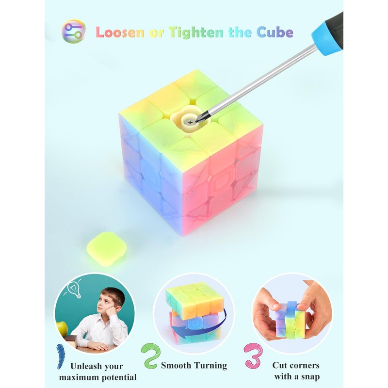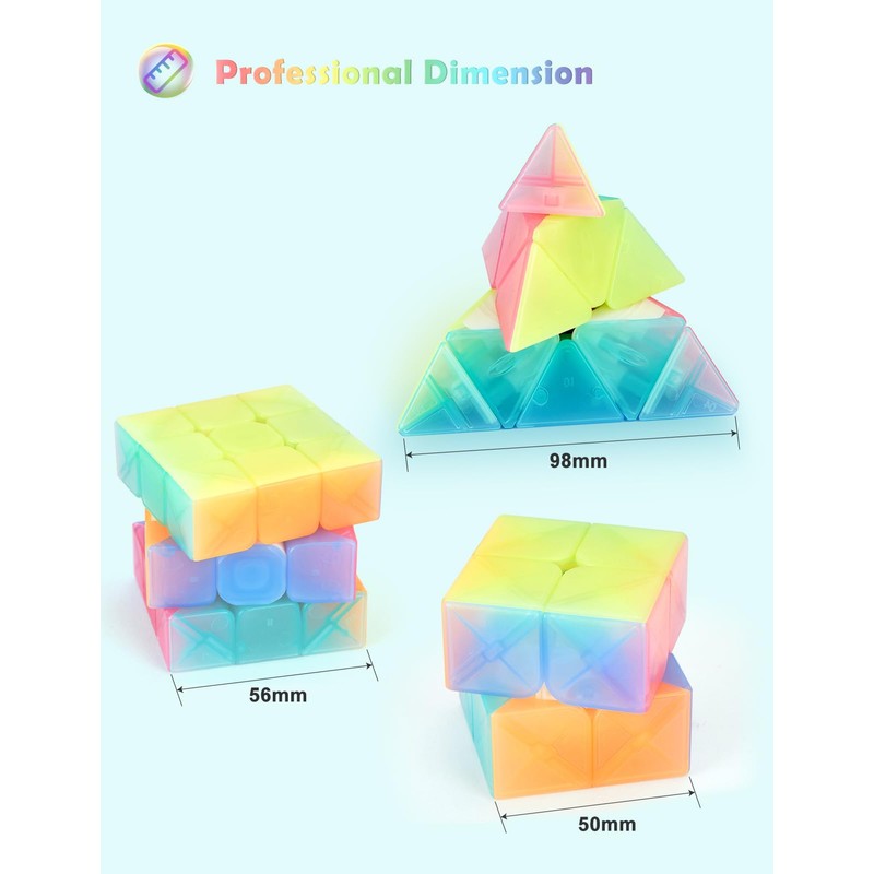 ROXENDA Speed Cube Set, 2X2 3X3 Pyramid Speed Cube Stickerless Fast Cube with Instruction (Jelly cube set)