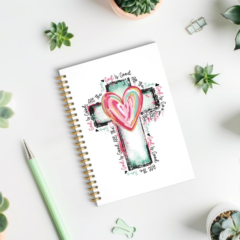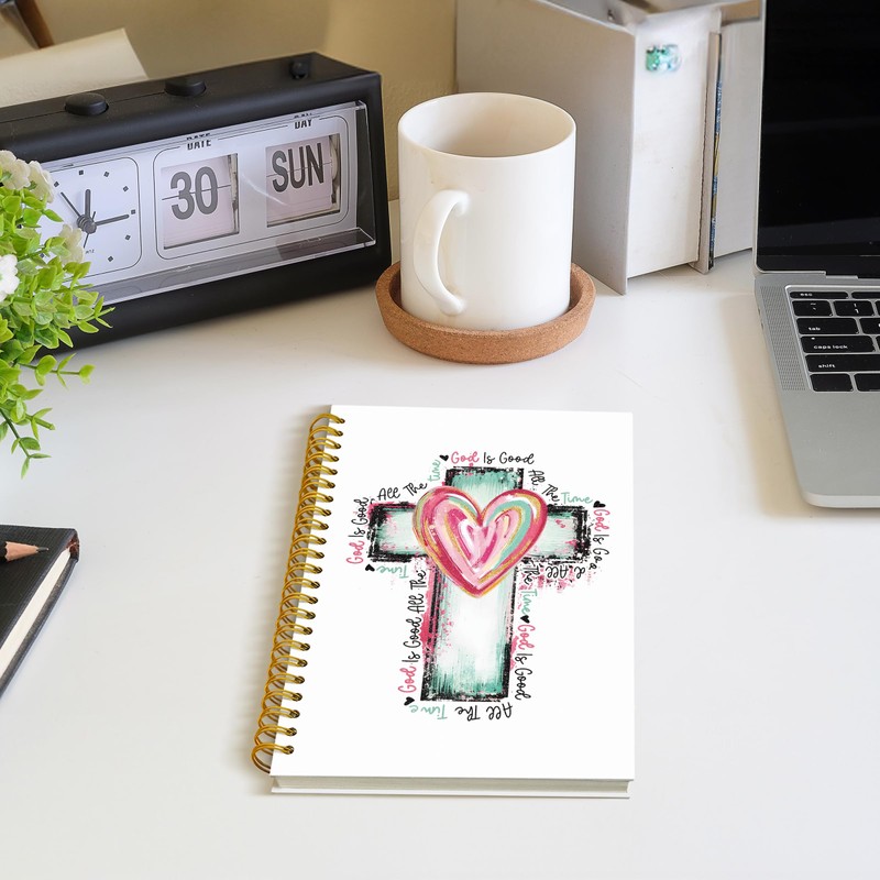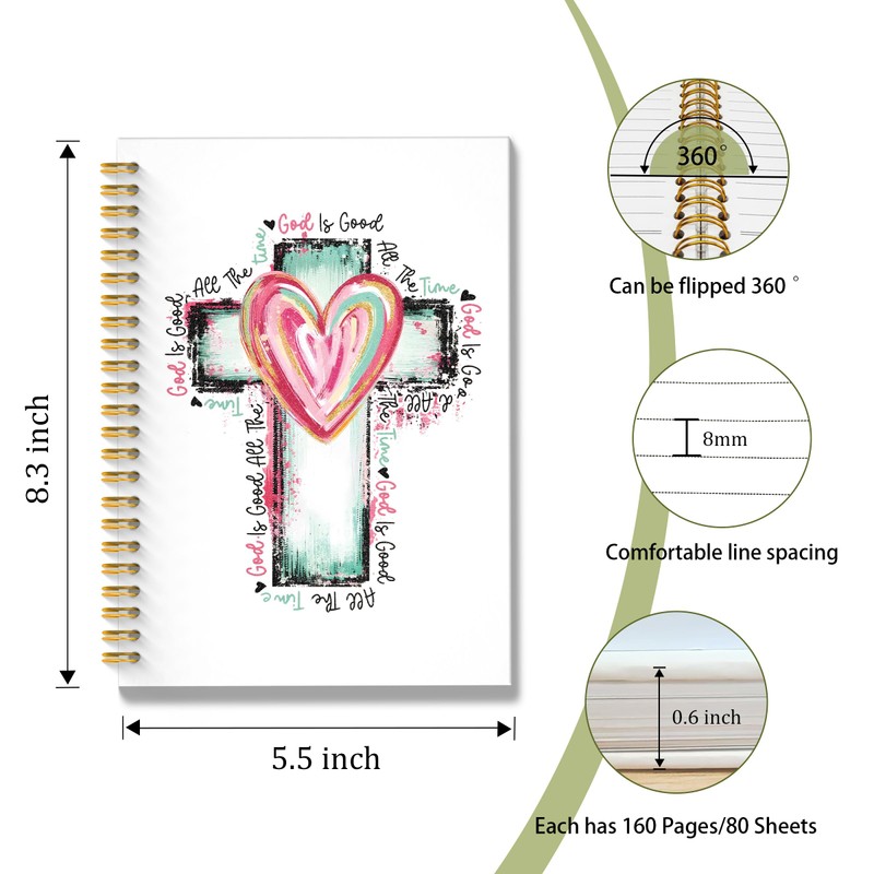 ROXMART Christian Cross Glitter Spiral Notebook, God Is Good All the Time Bible Verse Journal, Pastel Religious Scripture Hardcover Notebook Journal for Writing Note Taking, 5.5x8.3 Inch