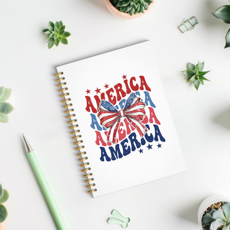 ROXMART Coquette Red White and Blue Bow Patriotic Notebook, USA Flag Journal, American Citizenship Gifts, 4th of July Journal Notebook, 5.5x8.3 Inch