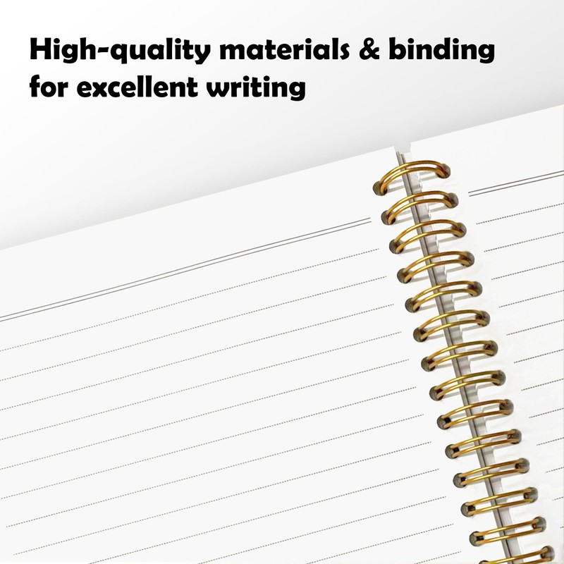 - Flexible Spiral Binding: The twin-loop spiral lets the notebook open fully and fold back without damaging the spine. This design allows comfortable writing on both sides of each page and provides a flat surface for more stable use.