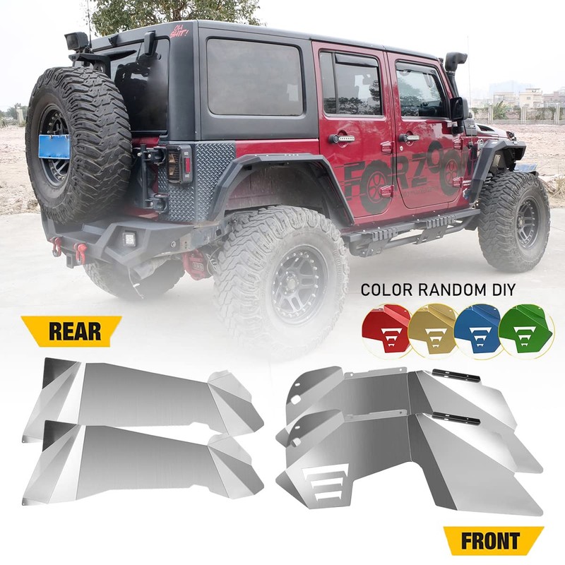 - ✅HEAVY DUTY CONSTRUCTION: This Front Rear Inner Fenders is made with durable steel sheets that bolsters strength of the weight-bearing region.. Powder coated black textured finished make your vehicle prevented mud, debris, dust and other harsh environment.Providing maximum and all-round protection for underside and rocker panel area from damaging impacts.