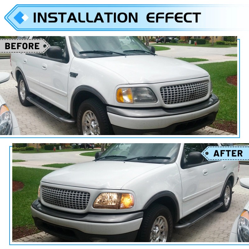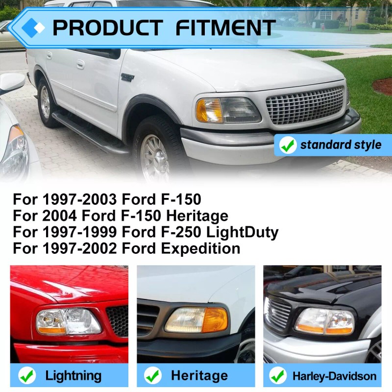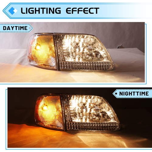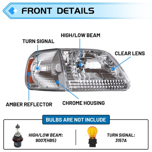 ROXX Headlights Chrome Clear Projector Headlamps Pairs For 1997-2003 Ford F150 F-150