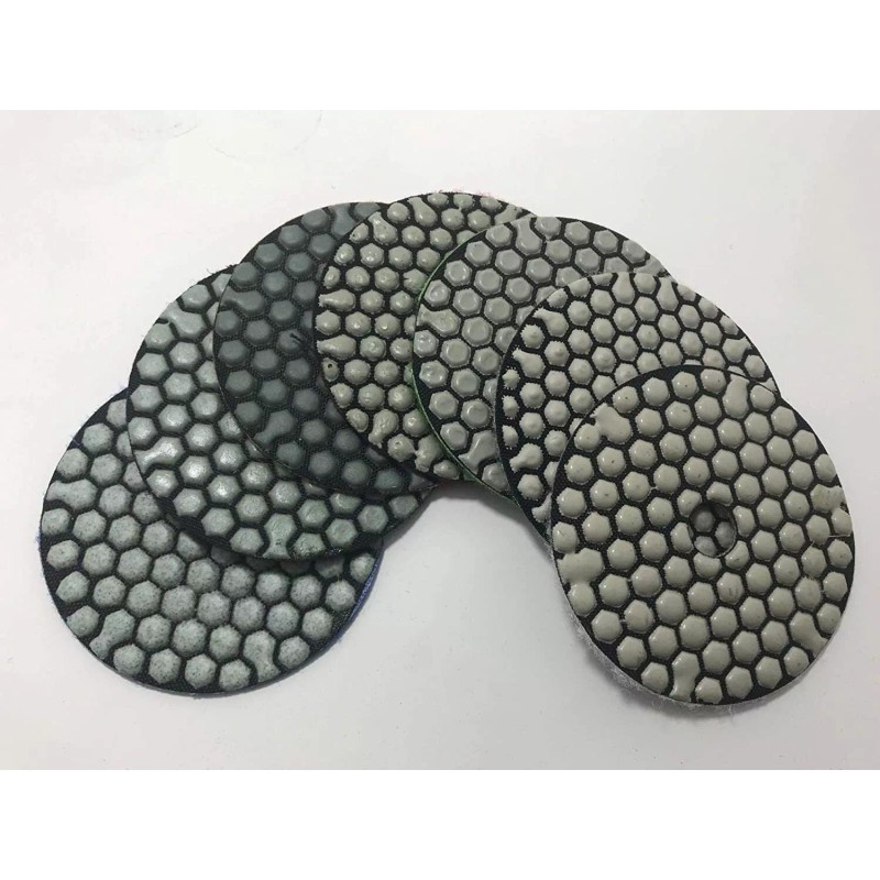 (d) 8 Pieces of 5" / 125mm Diameter Diamond wet dry (DRY use recommended) Polishing Pad for granite marble concrete sandstone travertine: