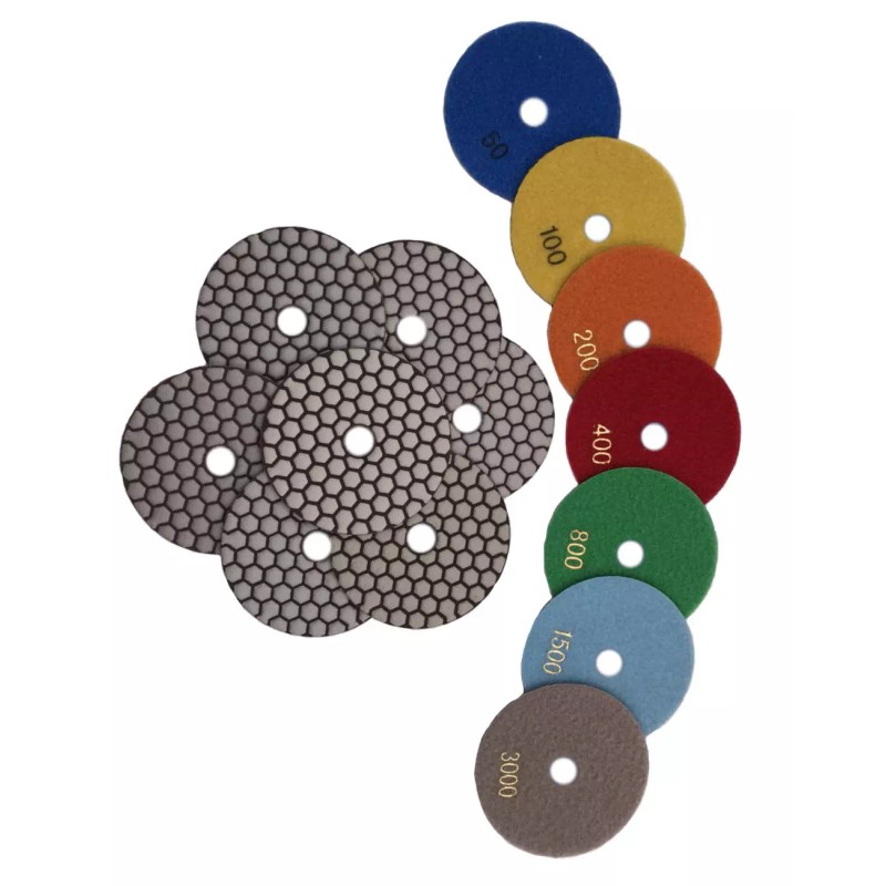 (c) 28 Pieces of 4" / 100mm Diameter Diamond wet dry (DRY use recommended) Polishing Pad for granite marble concrete sandstone travertine: