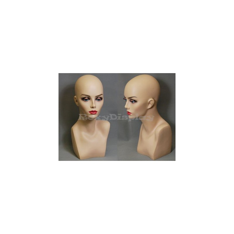 Roxy Display (MD-PH17) Realistic Female Mannequin Head Flesh Tone Pretty Make-up, Jewlery Display.