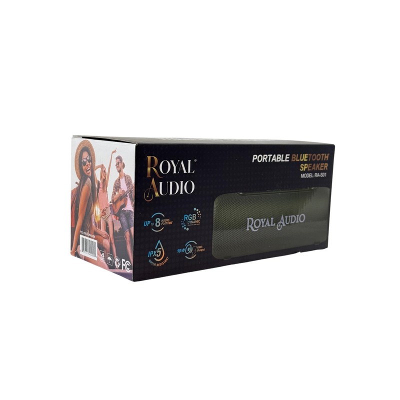 The Royal Audio RAS01 Wireless Portable Speaker is the perfect blend of powerful sound, portability, and durability. With a 10W RMS output and Bassboom Technology, it delivers deep bass and crisp treble, enhancing your music experience whether at home or outdoors.