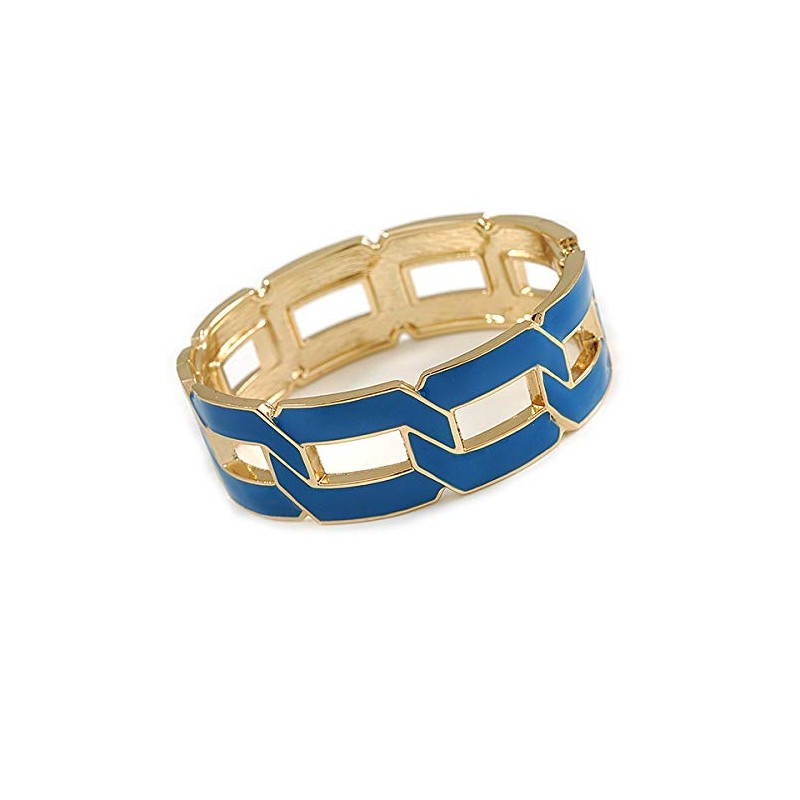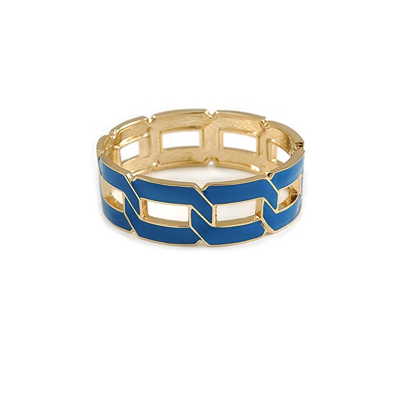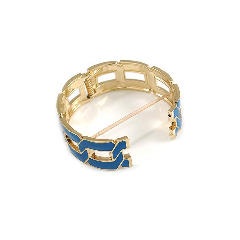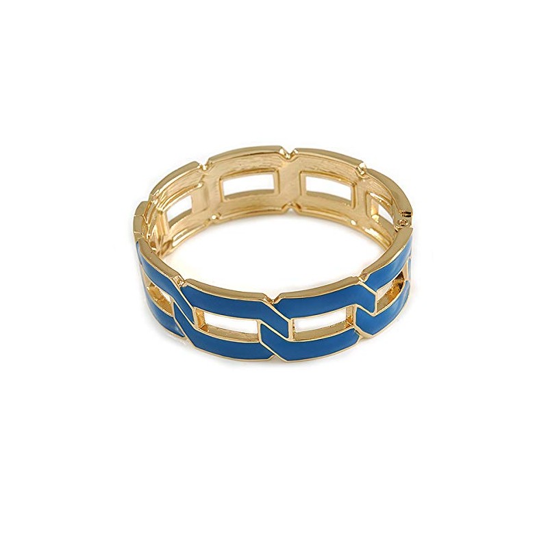 Royal Blue Enamel Link Oval Hinged Bangle Bracelet In Gold Tone - 18cm Long