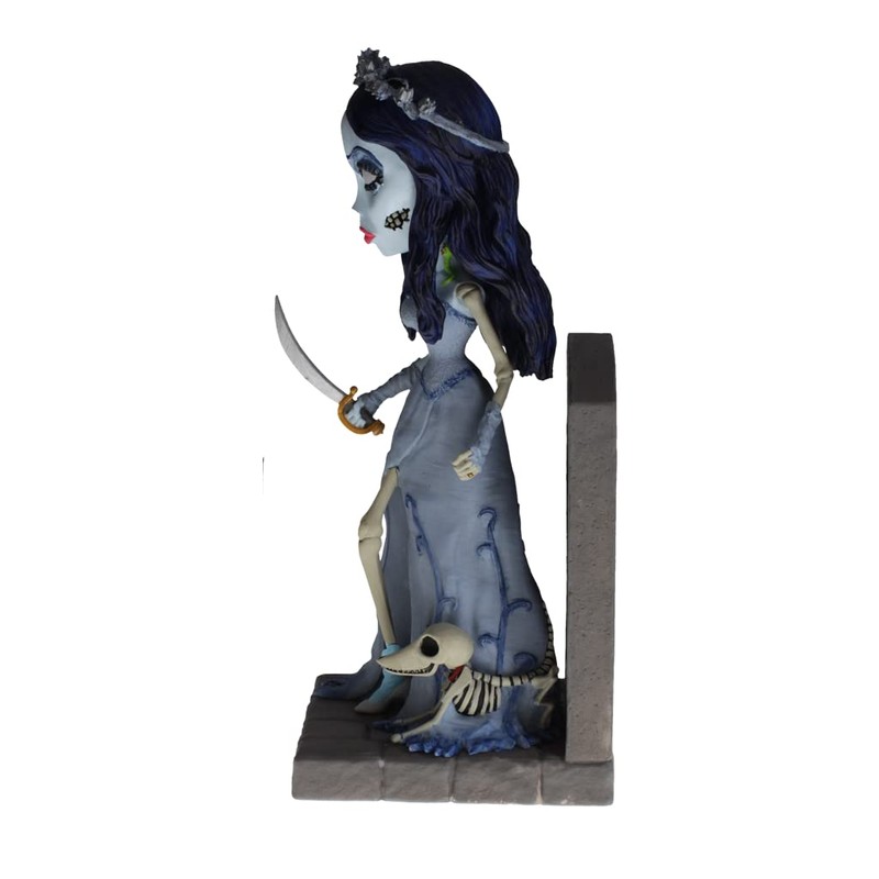 - CORPSE BRIDE EMILY BOBBLEHEAD: Bring the ethereal charm of Emily, voiced by Helena Bonham Carter, from Tim Burton's stop-motion classic "Corpse Bride" to your collection. This intricately designed bobblehead features Emily in her iconic tattered wedding gown and a crown of withered blue roses.