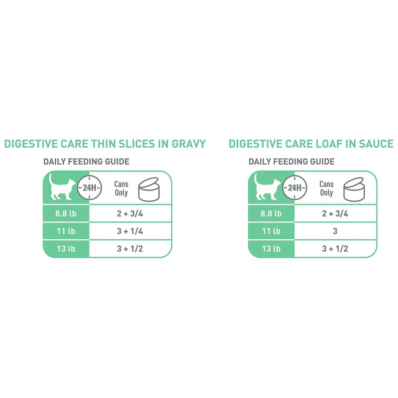 - VARIETY PACK: Offer your cat a variety of textures with Feline Care Nutrition Digestive Care Wet Cat Food Variety Pack, including six Loaf in Sauce 3 oz cans and six Thin Slices in Gravy 3 oz cans