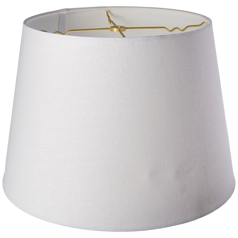 This tapered shallow drum hardback lampshade - Linen White 12 x 16 x 11 is a part of Royal Designs, Inc. Timeless hardback lampshade Collection and is perfect for anyone who is looking for a simple yet stunning lampshade. Royal designs has been in the lampshade business since 1993 with their multiple shade lines that exemplify handcrafted quality and value. Exterior fabric: premium linen fabric interior fabric: off-white hardback lining washer: standard brass-finish spider Fitter, use a finial to fasten shade trim: fabric on top and bottom is rolled over the edges frame: heavy grade rust resistant brass frame bulb: suggested maximum wattage is 150-watt for most sizes height is measured by vertical height from top to bottom, not slant of the shade.
