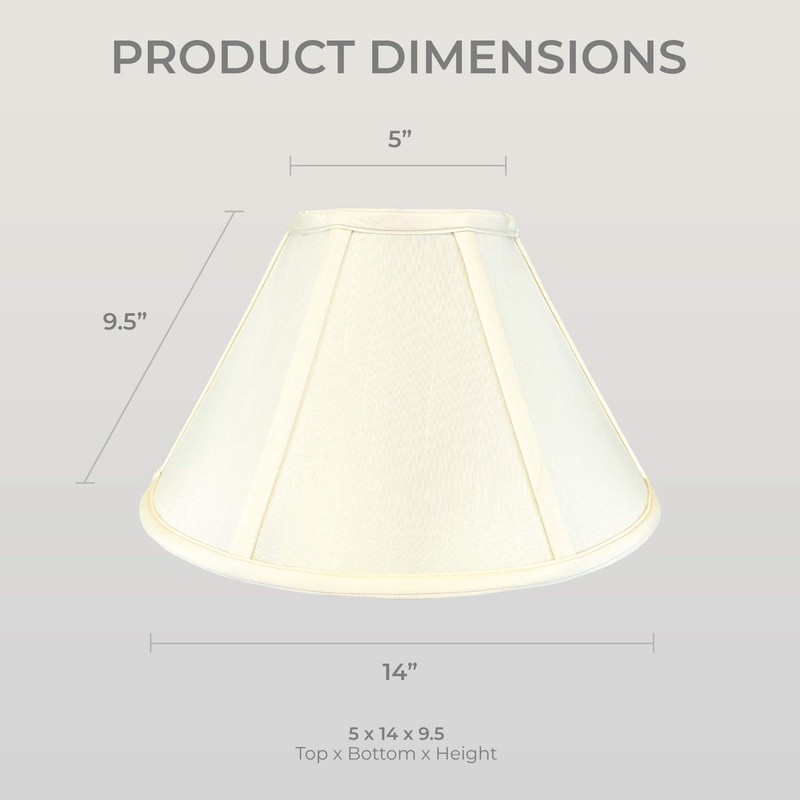 - DIMENSION: Our traditional basic coolie lamp shade measures 5" x 14" x 9.5" (Top Diameter x Bottom Diameter x Slant Height)