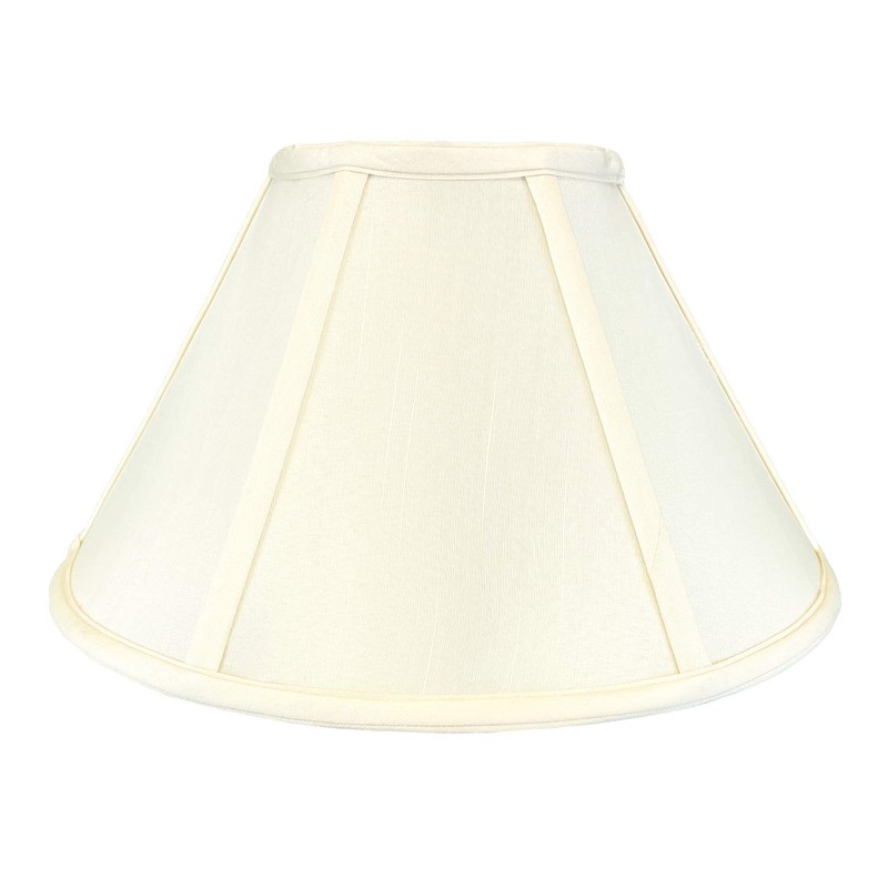 The Coolie Empire Basic Lampshade is a part of Royal Designs, Inc. Regal Basic Shade Collection. This traditional empire style is made of the best shantung fabric that comes in many colors and sizes. Comes with Off-White softback lining for the interior fabric. Royal Designs has been in the lampshade business since 1993 with their multiple shade lines that exemplify handcrafted quality and value. Exterior Fabric: Hand Tailored Silk-Type Shantung (except Linen, Mouton, Burlap Faux Rawhide fabrics) Interior Fabric: Off-White Softback Lining (Black, Burlap Faux Rawhide fabrics have gold lining) Washer: Standard brass-finish spider fitter, use a finial to fasten shade. (Shades with 9”+ top diameter have a V-Notch fitter for use with a 6” or 8” reflector bowl)Trim: Top and bottom trim (single or double) with vertical piping Frame: Heavy grade rust resistant metal frame Bulb: Suggested maximum wattage is 150-watt for most sizesHeight is measured by slant height from top to bottom of the lampshades front facePlease measure your existing shadea replacement harp may be needed for a proper fit or additional adjustment if changing height of shade.