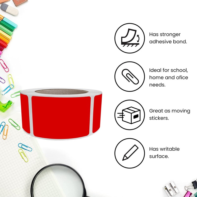 • Permanent adhesive. High quality rectangular colour coding stickers adhere firmly to most surfaces. In this package you will receive 500 rectangular stickers on a roll.