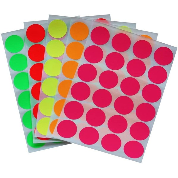 - The round sticker neon colored dot measure 1" inch sticks firmly to documents, files, inventory and drawers. Use as a multipurpose label. Round stickers come on 6 x 4 inch sheets.