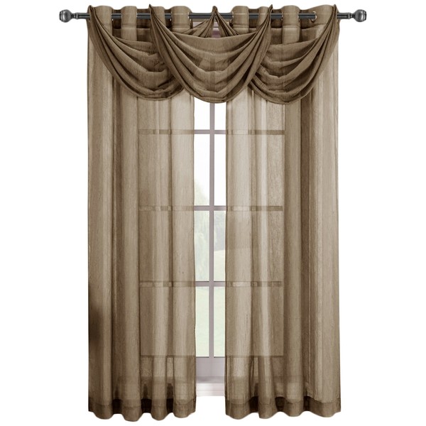 Royal Hotel Abri Mocha Grommet Crushed Sheer Curtain Panel, 50x63 inches