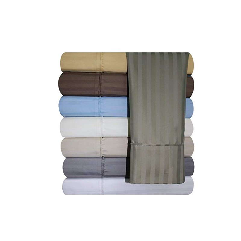 Royal Hotel Bedding 620-Thread-Count Pillowcases Set, Wrinkle-Free Cotton-Blend Pillow Cases, Sateen Striped, Standard Size, White