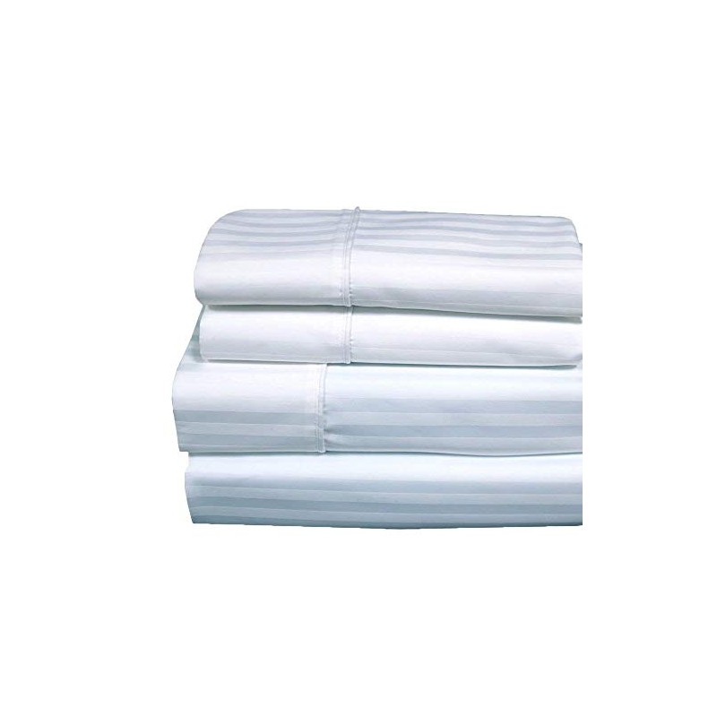 Royal Hotel Bedding 620-Thread-Count Sheet Set, Wrinkle-Free Cotton-Blend Sheets, Sateen Striped, Deep Pocket, Split-King: Adjustable King Size, White