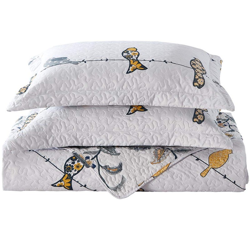 Royal Hotel Bedding Ayat Birds Oversized Coverlet Set, Luxury Printed Design Quilt, Bedspread Set - Filled Quilts - Fits Pillow top Mattresses - 3PC Set - King / Cal King Size