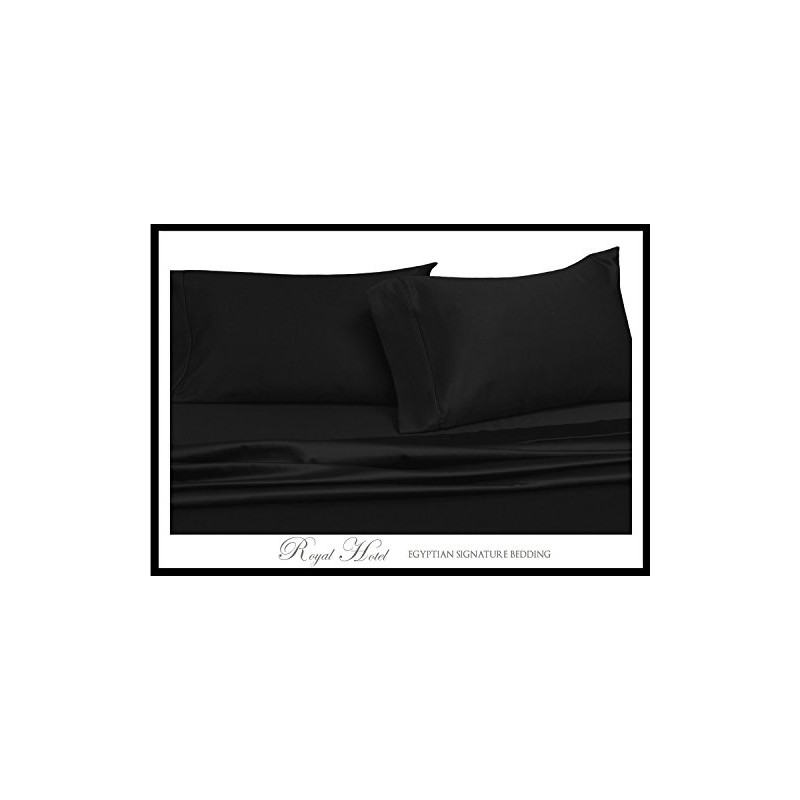 Royal Hotel Bedding Cotton Sheets, 4PC Bed Sheet Set, 100% Cotton, 300 Thread Count, Sateen Solid, Deep Pocket - Black - Cal King, California King Size