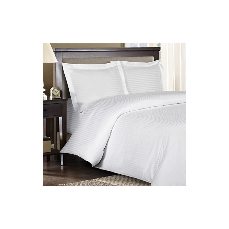 Royal Hotel Bedding King Size Striped White 300-Thread-Count 3pc Duvet-Cover-Sets and 1pc Siberian Goose Down Comforter 100 Percent Cotton 100% Cotton