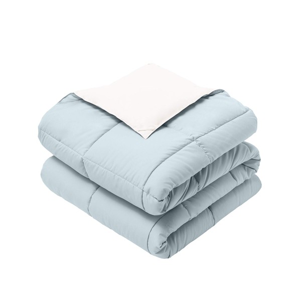 Royal Hotel Bedding Reversible Throw Blanket, Hypoallergenic, Down Alternative Throw Blanket, Medium Warmth, 50 by 75 Inches, Blue - White