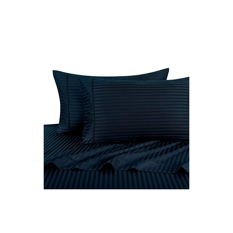 Royal Hotel Bedding Stripe Navy 300-Thread-Count 3pc Super-Single Size Waterbed-Sheets 100% Cotton, Sateen Stripe Sheet Set