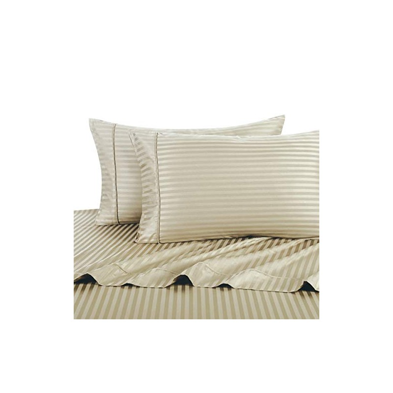 Royal Hotel Bedding Stripe Tan Full Size Sheets, 4PC Bed Sheet Set, 100% Cott...