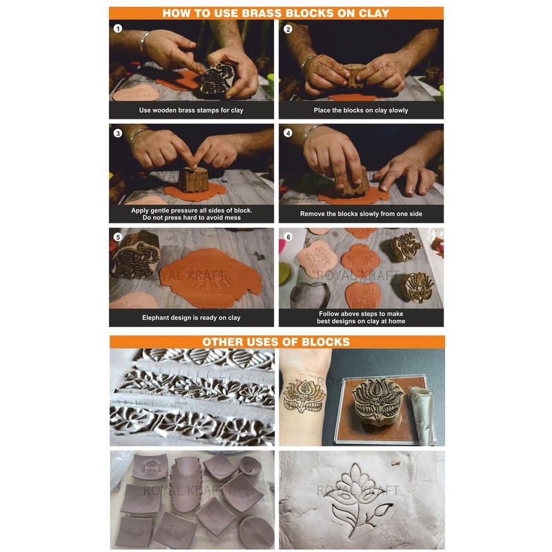 Royal Kraft Flower Brass Wooden Stamp (Set of 5) - DIY Clay Ceramic Blocks BHtag0005