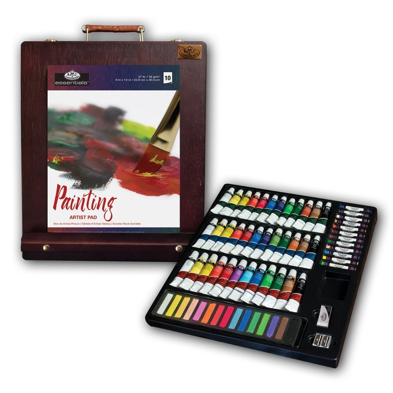 - More: 1 knead able eraser, 1 drawing eraser, 1 sharpener, 1 painting artist pad (9 in x 12 in), 1 drawing artist pad (9 in x 12 in), 1 wooden easel box.