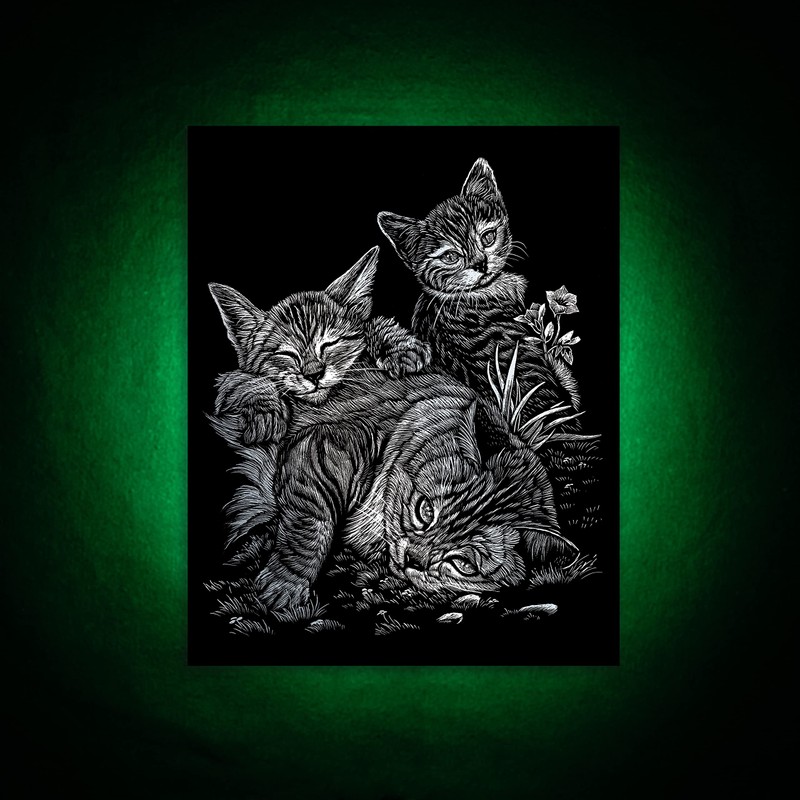 Royal & Langnickel Silver Engraving Art A4 Size Tabby Cat And Kittens Designe...