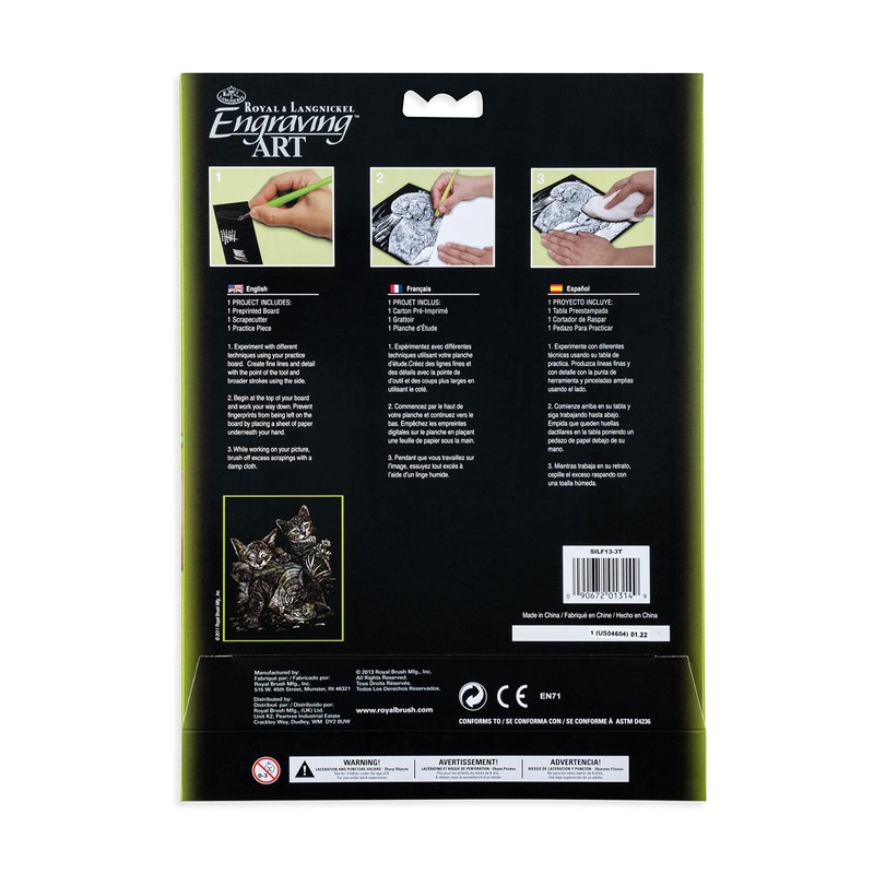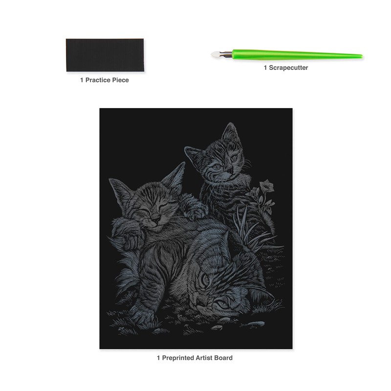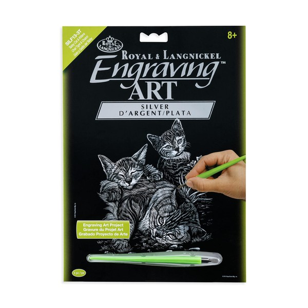 Royal & Langnickel Silver Engraving Art A4 Size Tabby Cat And Kittens Designed Painting Set