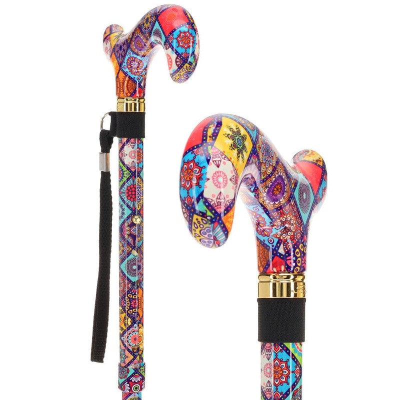 - Walking Cane: Experience comfort and style with the Fashion Stix Colorful Collage Folding Adjustable Derby Walking Cane! Its adjustable length and vibrant design make walking a delight.