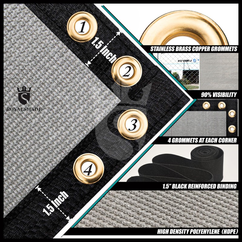 Royal Shade 4' x 10' Grey Fence Privacy Screen Windscreen Cover Netting Mesh Fabric Cloth - Cable Zip Ties Included - WE Custom Make Size