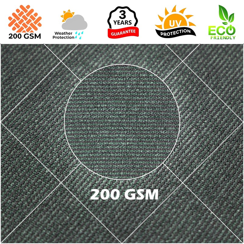 • 【DURABLE MATERIAL】: Our Shade Sail is 100% crafted from 200 GSM HDPE (High-Density Polyethylene). Its woven knitted design is breathable, preventing water pooling and strong wind. Blocks up to 95% of harmful UV rays, our Shade Sails come with a 3-year warranty against UV degradation. Built to endure sun exposure, it resists UV and fading while providing a noticeable temperature reduction of up to 15 degrees compared to unshaded areas.