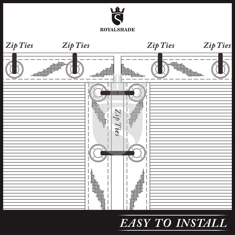 - ⚑ Installation: Edges are finished with heavy duty black binding and stainless brass grommets, 4 grommets in each corner, other grommets are placed evenly along the edges, 12" apart on vertical edges, 24" apart on horizontal edges.