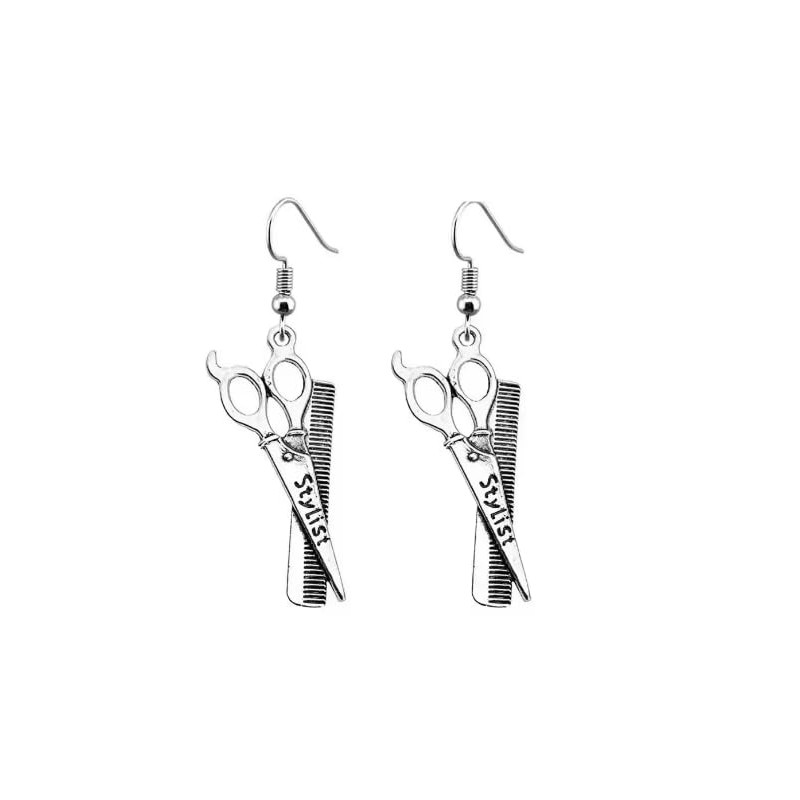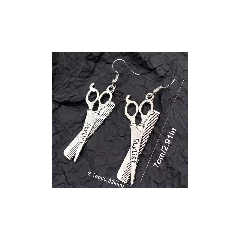 - DESIGN FEATURES: Unique hairdresser-themed earrings featuring detailed scissors and comb charms in antique silver finish
