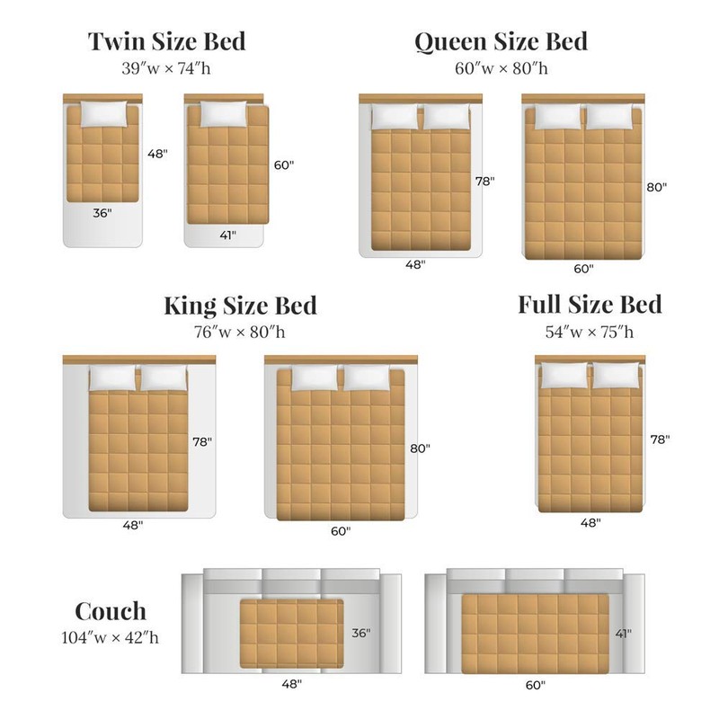 - This blanket engineered to be around 10% of your body allowing your body to go through necessary stages of sleep and wake up fully rested during a day or night. Weighted blankets should be smaller than the size of your bed. It’s designed to sit on top of the bed, so it doesn’t slide off to one side.